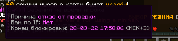Запрещено загружать видео-доказательства длительностью более, чем 3 минуты, или не указывая тайм-коды места очевидного нарушения. Например, запрещено кидать рек длинной 10 минут с читером-нарушителем, обязательно укажите наиболее очевидные моменты.